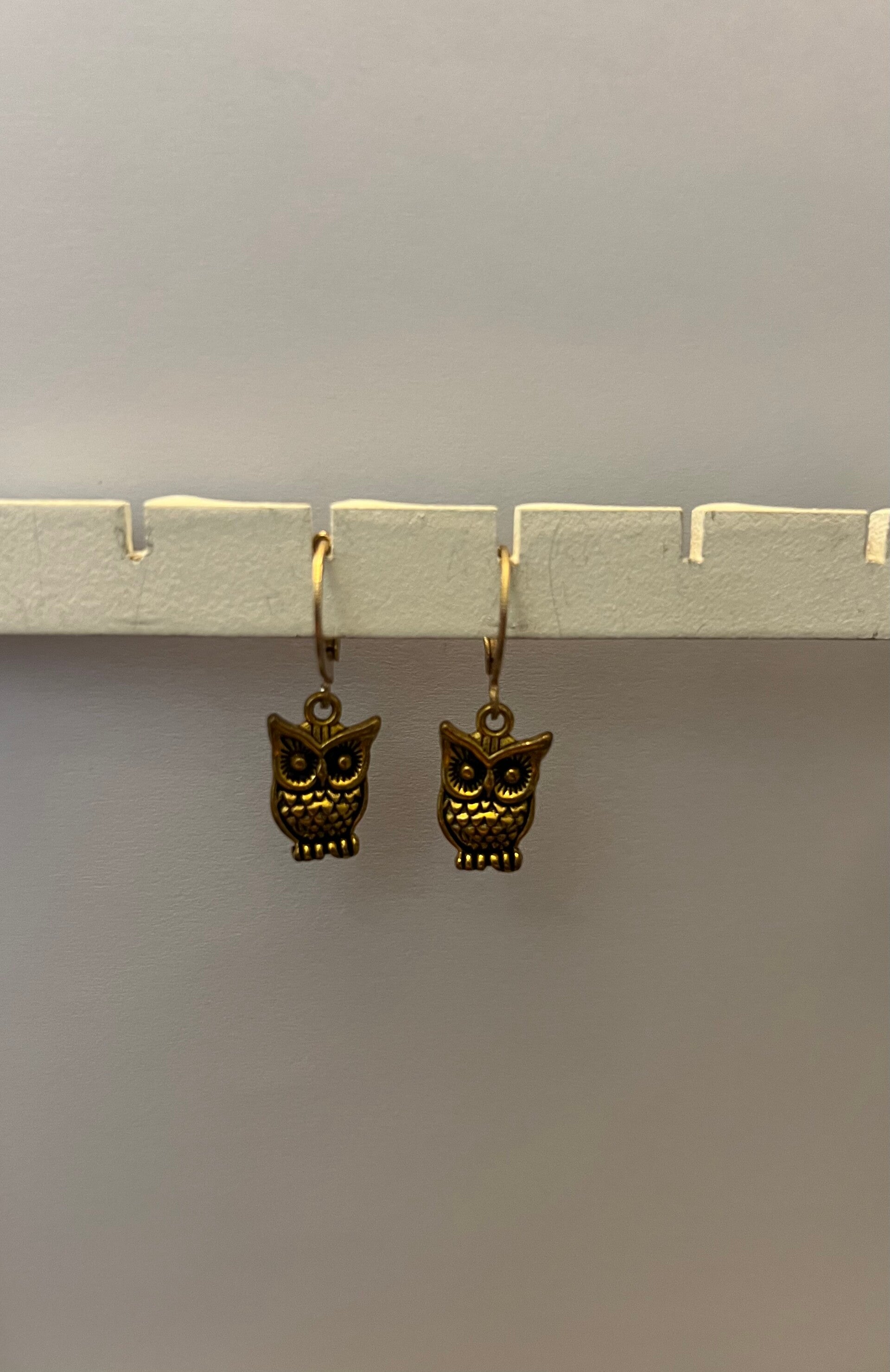 Uil oorbellen goud.